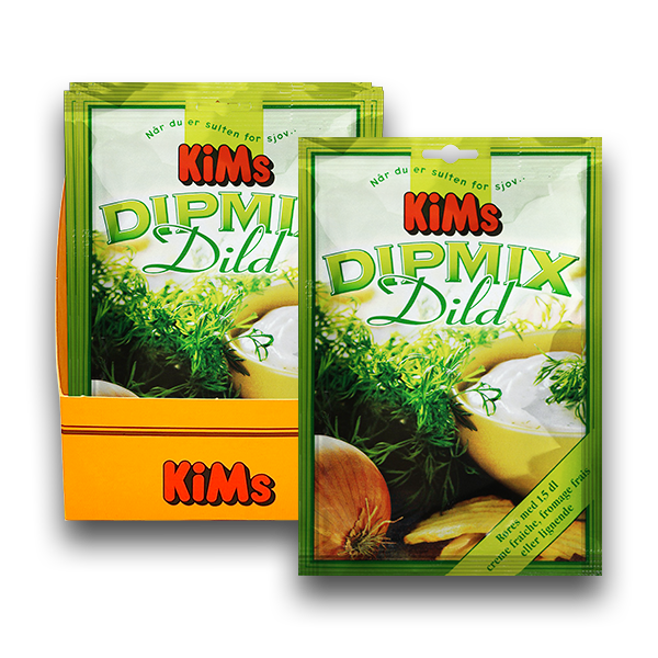 KiMs Dip Mix m/Dild 25x14g er krydderiblanding til dip. Med den skønne smag af dild og løg passer den perfekt til dine chips! Vi forstår godt, at den er blandt danskernes ultimative favoritter!
